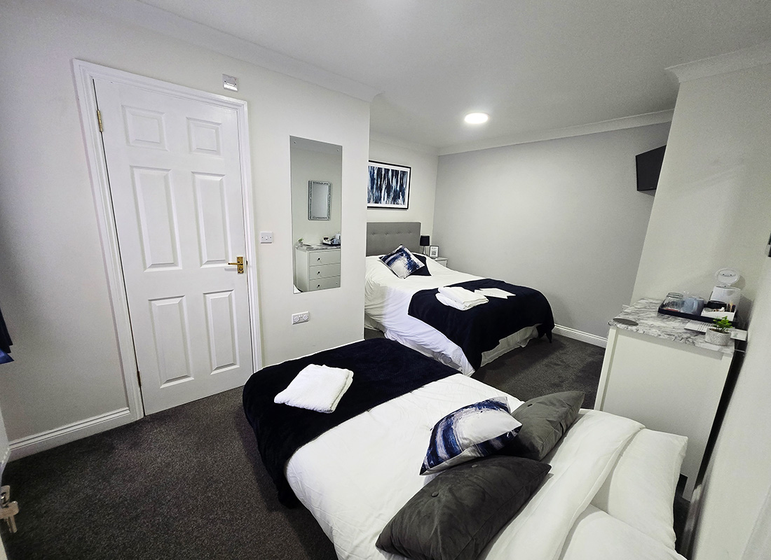 This family room features a private entrance, soundproofed walls, and a private bathroom boasting a walk-in shower. Featuring a patio, the room also provides a tea and coffee maker, a carpeted floor and a flat-screen TV. The unit has 1 double bed and 1 small futon double bed.